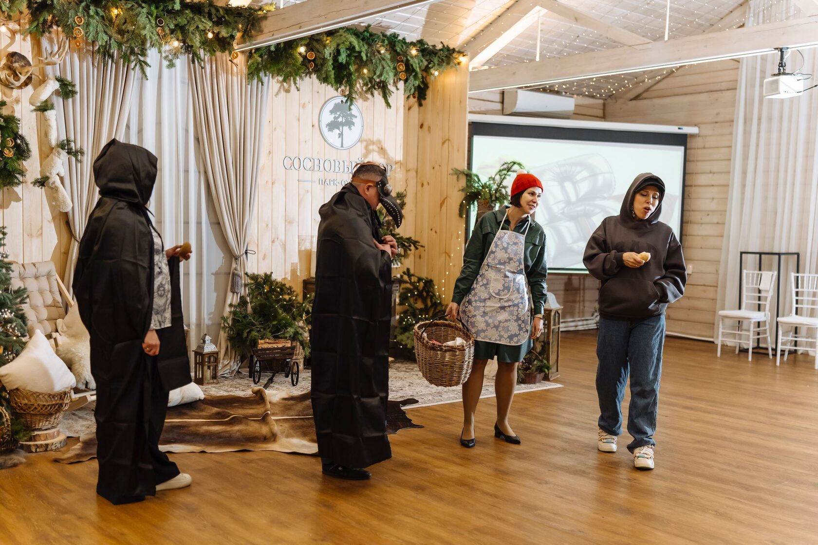Эта пьеса про нас и нашу жизнь на работе, но при этом она фантастическая: в ней есть Пушкин, три сестрицы, фея, психолог, Красная Шапочка, царица, охотник и другие герои (ролей хватило всем).