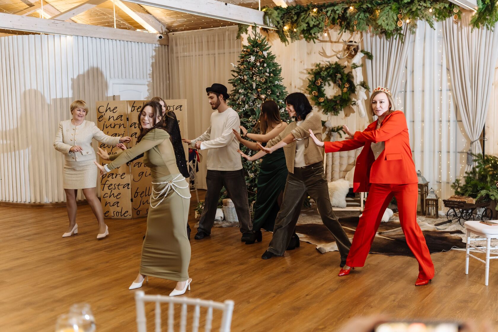 Танцы, песни, праздничные тосты, вкусная еда и шикарный торт — всё это тоже было!